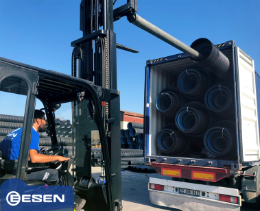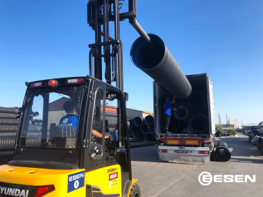 ESEN 45 yılı aşkın deneyimi ve gelişmiş teknolojisi sayesinde Orta Doğu’da bir başka projenin daha parçası olmaya devam ediyor. İzmir fabrikamızda üretilen DN 300mm – DN 800mm çap aralığında, SN8 sınıfındaki HDPE Koruge borular Atık Su Projesi için Orta Doğu’ya doğru yola çıkmıştır.