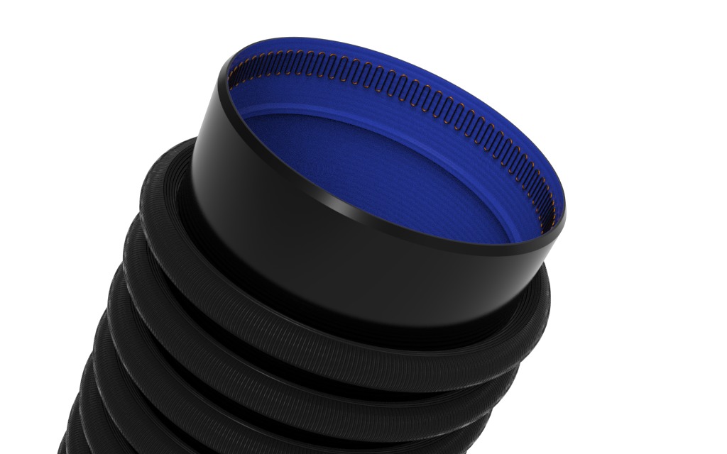 An integrated fusion wire located at the pipe ends enables electrofusion welding. This method ensures maximum leak-tightness while significantly reducing installation time. After welding, the system forms a unified monoblock structure.